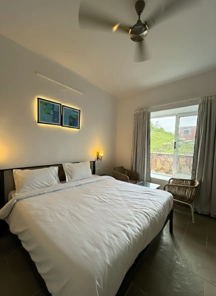 If you are searching for something intimate yet special, a 1 Bhk villa in Udaipur is an experience worth choosing. Earth Villa, a unit of Goya Hills, is designed for guests who value privacy, calm, and thoughtful comfort. Our dedicated service staff supports you throughout the stay. They freshly prepare mouthwatering meals for you, adding warmth to every moment of your stay. This 1 BHK villa with a private pool offers a high level of personalisation, which is also making it an ideal spot for romantic weekends and quiet celebrations away from the city noise.