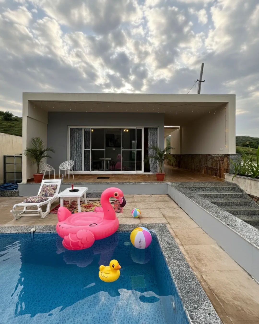 The 1 BHK villa with a pool showcases a large private swimming area, perfect for enjoyable evenings, quiet afternoons and relaxed mornings.