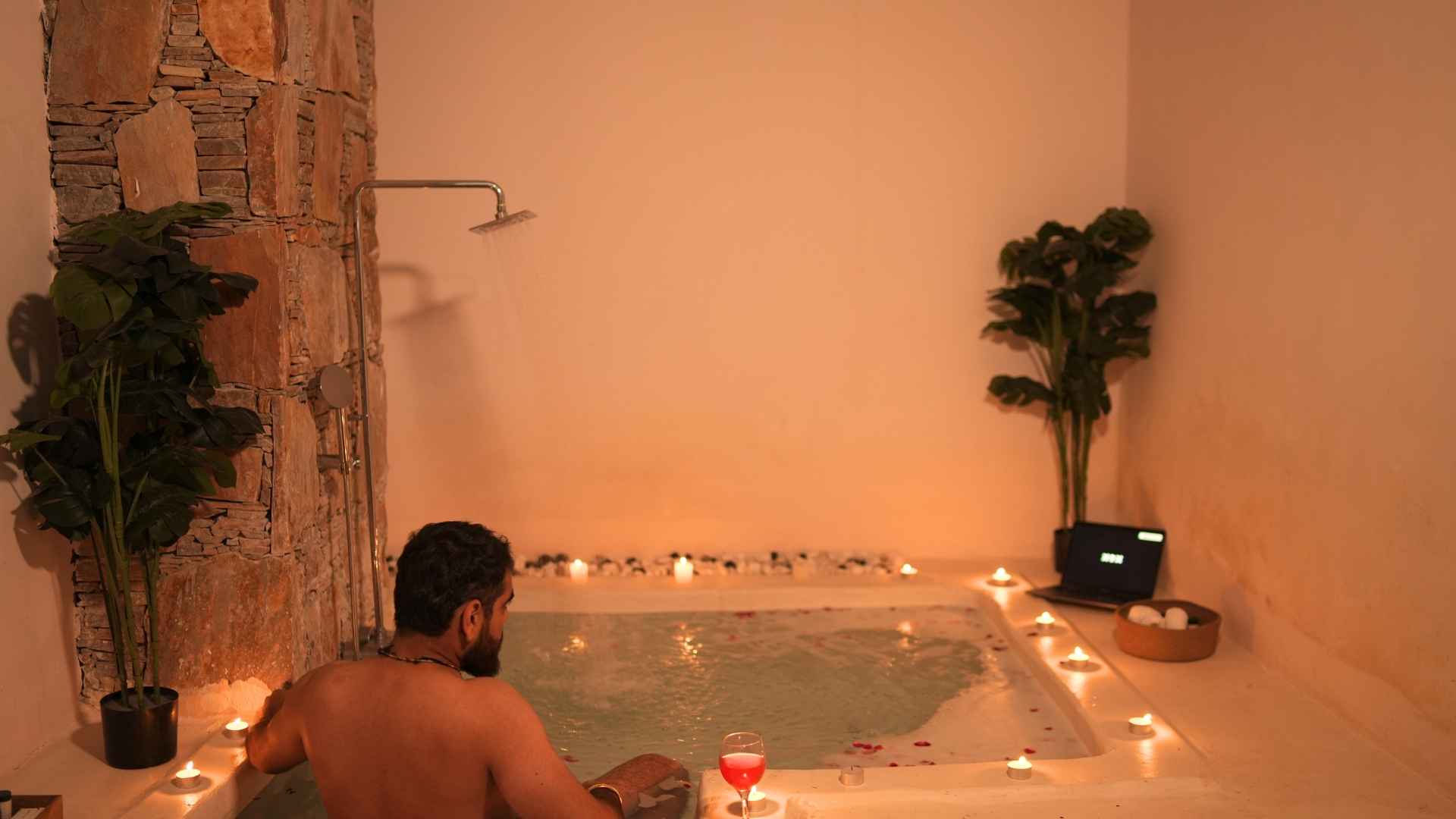 An exclusive experience of the sauna with views: One of the best parts of this room is its own private jacuzzi where you can enjoy your me time in your own way with no interruptions from noisy family, kids or relatives, just you and the calm water in the jacuzzi.