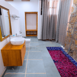 A stay with royalty vibes and space: A spacious room, beautifully decorated with vibrant colours, Rajasthani touch that just matches your vibes. That’s all you need for a perfect stay.